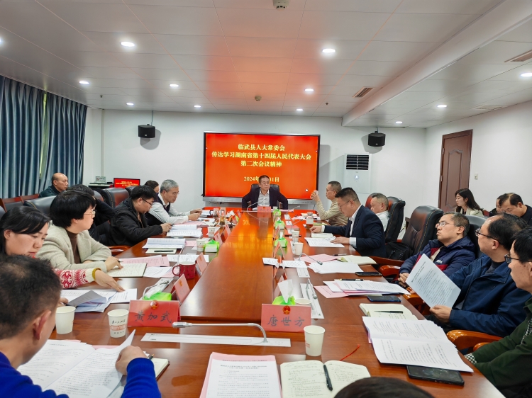 2024年1月31日下午,临武县人大常委会机关干部职工40余人会聚一团,学习传达湖南省第十四届人民代表大会第二次会议精神,该县人大常委会主任谭晓亮主持学习会议并讲话。