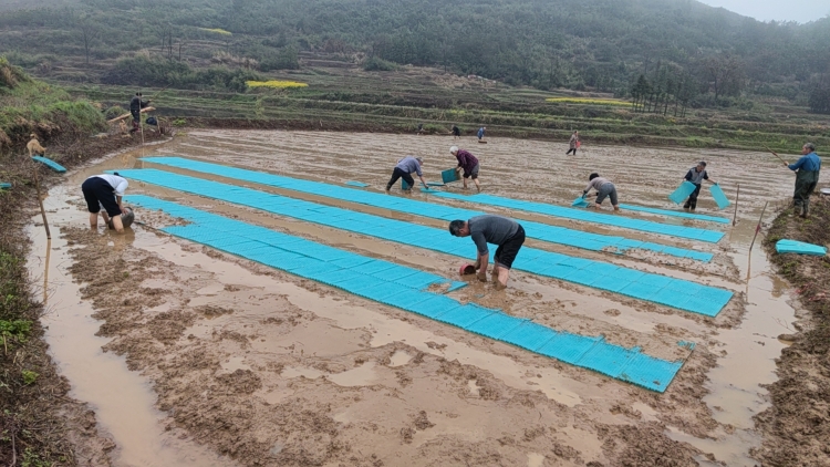 代表们来到清塘村400亩连片粮食生产基地时,几名工作人员正在抛撒浸种发芽后的谷种,谷种颗颗挺立,呈现出一幅生机勃勃,蓄势待发的景象。“我们这一带原有农户自行分散耕作的农田300亩左右,前段时间政府帮助村里进行耕地抛荒整治,现在这一片共有连片农田400余亩,今年我村水稻种植面积将实现大突破”村支书蒋光光向视察组兴奋地介绍到。“我们现在已犁田300亩左右,抛撒谷种100余亩,接下来将抢抓时机,尽快犁好田,分别采取抛撒谷种及插秧两种方式把这400余亩耕种到位”基地负责人胡友祥向代表们介绍到。
