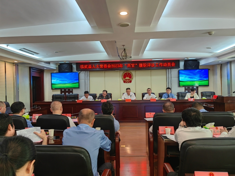 4月21日,临武县人大常委会"两官"履职评议工作动员会召开,县人大常委会党组书记、主任谭晓亮出席会议并讲话,县人大常委会副书记、副主任蒋阳武主持会议。