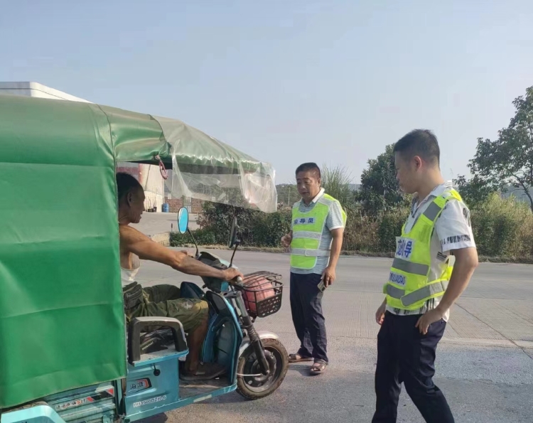 “请您佩戴好头盔,遵守交通规则,注意交通安全。”临武县人大代表、武水镇双塘村党支部书记雷小雄正耐心细致地向一位骑摩托车未佩戴头盔的群众进行现场劝导。