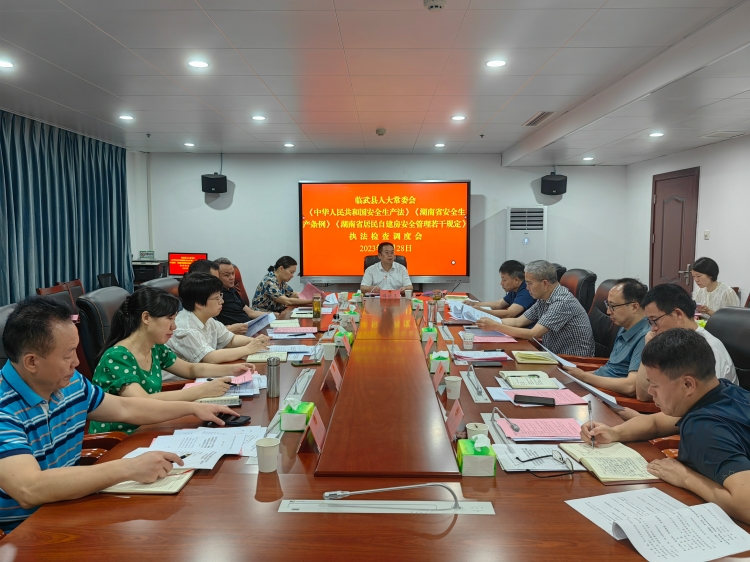 自7月24日省人大常委会召开《中华人民共和国安全生产法》《湖南省安全生产条例》《湖南省居民自建房安全管理若干规定》(以下简称安全生产“一法一条例一规定”)执法检查动员部署电视电话会议以来,临武县人大常委会闻令而动,迅速贯彻落实省人大常委会党组书记、副主任乌兰在讲话中提出的“省市县乡四级人大联动,统一步调、上下协同”的工作要求,第一时间将安全生产“一法一条例一规定”执法检查增列为今年县人大常委会的重点监督议题, 并组织召开了安全生产“一法一条例一规定”执法检查工作推进会,迅速动员部署执法检查相关工作。