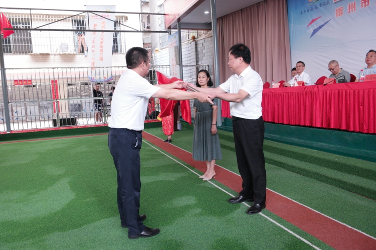 闭幕式上还进行了郴州市人大系统第三届“友谊杯”门球赛会旗交接仪式,由安仁县人大常委会副主任袁美蓉代表下次门球赛的承办单位接取了会旗。