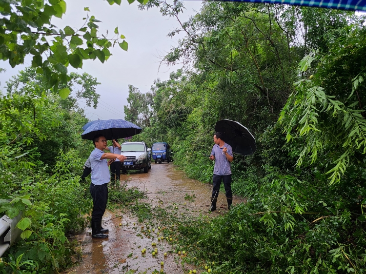 受暴雨天气影响,临武县香花镇道路两旁树木倾倒、折断现象时有发生,影响了人民群众出行,并且存在较大交通安全隐患。6月25日,香花镇芹菜村与广坪村交接路口处,一颗樟树横贯道路中央,伏枝满地,严重阻碍交通出行。知情后,香花镇人大主席团立即组织附近村干部、人大代表赶赴现场,用砍刀、锯子等工具对倾倒树木进行锯断,并清运处理,立即开展现场应急处置。经过近一个小时的清理,倾倒树木全部清理完毕,及时消除了隐患,恢复了道路正常通行。