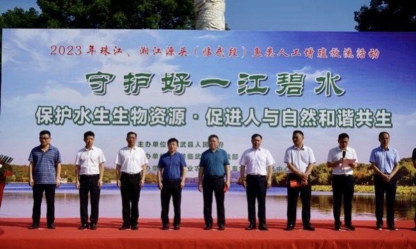 为贯彻落实习近平总书记考察湖南时“守护好一江碧水”的殷殷嘱托,保护珠江、湘江源头及全流域水质环境,6月12日,临武县举行“守护好一江碧水,保护水生生物资源·促进人与自然和谐共生”2023年度鱼类人工增殖放流活动,县人大环资委、县农业农村局等组委会成员单位参加活动。活动当天共增殖放流鱼苗180余万尾,其中草鱼30万尾、鳙鱼100万尾、鲢鱼50万尾。